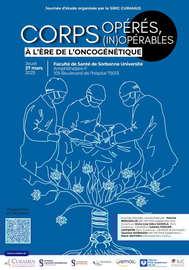 Nous sommes ravis d'annoncer la Journée d'étude "Corps opérés, corps (in)opérables à l’ère de l’oncogénétique" qui aura lieu le le 27 mars 2025, dans l'amphi F de la Faculté de santé de Sorbonne Université, 105 Boulevard de l'Hôpital, Paris.
